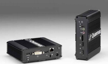 The QBOX-1000 is a fan-less Box PC with a volume of just 0.6-liter that is ideal for space critical applications. This embedded hardware platform is designed with Intel® Atom N270 Processor which provides with excellent performance enabled by next- generation 45nm Process Technology. The system is supported with Intel® 945GSE / ICH7-M chipset, and DDR2 SO-DIMM up to 2GB. Featured are a 2.5” SATA hard drive bay, eSATA, Internal Compact Flash Type II slot, GbE, USB 2.0 and DVI-I. The QBOX-1000 provides high reliability rugged case not only for great protection from EMI, cold and heat, but also integrated with passive cooling design for quiet fan-less operation such as Digital Signage, Gaming, Transportation, Surveillance, Automation and Thin Client.
